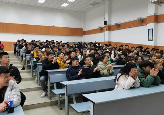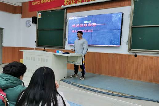 2019年12月11日下午体育与拓展训练中心组织休闲体育专业18级、19级全体员工参加了健身行业现状及就业指导专题讲座。四川省健身健美协会魏家喜主任及全国健身健美冠军海世昌和全国青年组女子比基尼亚军李莉两位冠军教练,魏家喜主任为18级、19级共200余名员工作了职业生涯规划及就业的专业指导。
