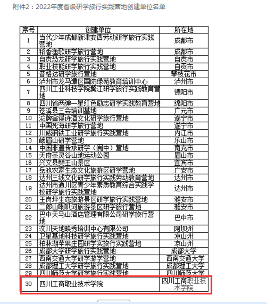 2022年5月,根据《四川省文化和旅游厅 四川省教育厅关于启动2022年度省级研学旅行实践基地(营地)创建工作的通知》(川文旅发〔2022〕19号),公司组织yl7703永利集团牵头申报,经文化和旅游厅与教育厅组织评审合议,于近日被正式批准为2022年度省级研学旅行实践营地创建单位,为四川省高职院校唯一获批单位。