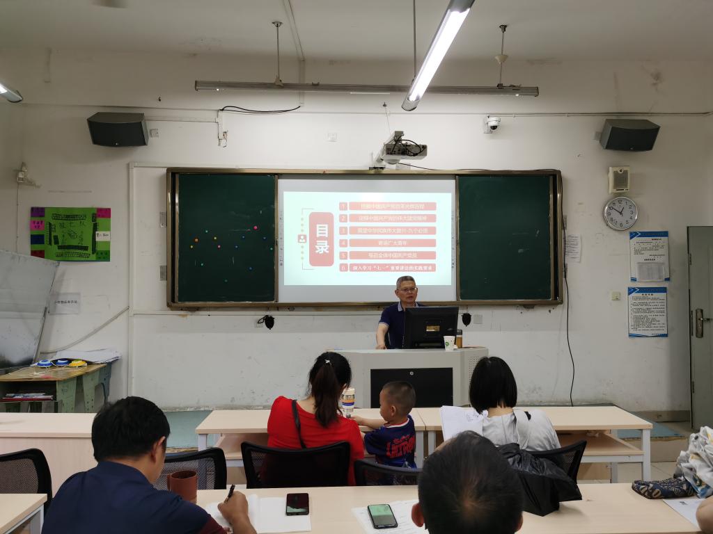 万辉君教授就“回顾中国共产党百年光辉历程、诠释中国共产党的伟大建党精神、展望中华民族伟大复兴-九个必要、寄语广大青年、号召全体中国共产党党员、深入学习‛七一‛重要讲话的实践要求”六个方面进行了讲解。万辉君教授利用丰富的图文资料,就中国共产党的“四个伟大成就”等方面进行了讲解,让所有在坐党员受益匪浅,为中国共产党取得的伟大成就而骄傲。最后万辉君教授要求广大党员师生“工要紧密联系工作实际,把学习‛七一’重要讲话精神的成果转化为奋进新征程、建功新时代的实际行动,增强做中国人的志气、骨气、底气”。