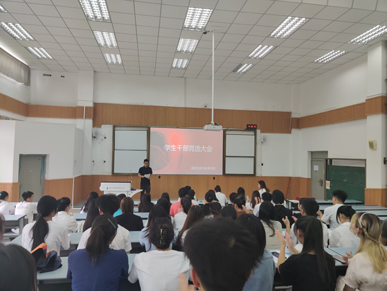 我系于2022年6月16号下午14:00在2c-105阶梯教室进行员工会竞选换届大会。出席此次大会的领导有万明冲万书记、邓雁方邓老师、炉小峰炉老师,另参与的竞选人有原各部门干事及部分同样热爱员工会的同学们。