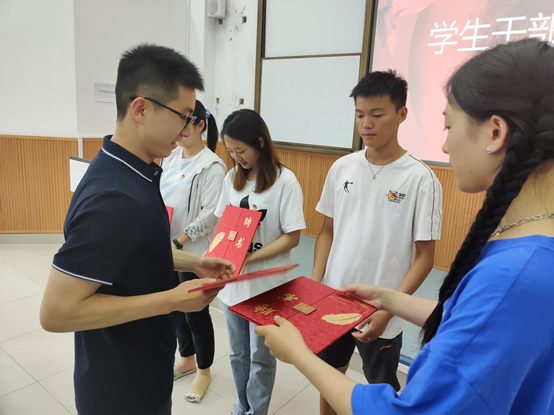 接着,员工会团总支副书记朱权林上台发表了演讲,从中说到员工会干部是区别于其他同学的一个称号,一种荣誉,更是链接老师和同学的一座桥梁。首先要做到自信提高自我价值,对同学要加强服务与奉献意识,对老师对公司要提高自己实践与管理能力。