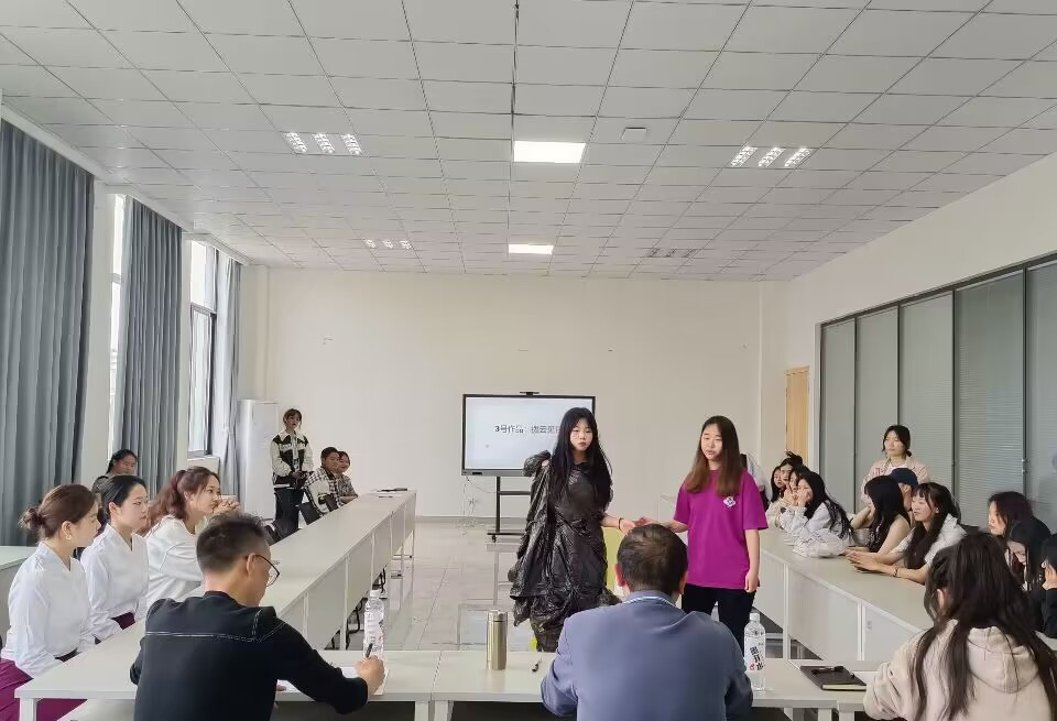 值得一提的是,旅游22353班的选手李元羽将塑料袋、废报纸等物品完美集合制成作品“海洋”,别出心裁的创意充分体现了环保的理念。赢得评委和观众的高度赞扬,最终摘得桂冠。